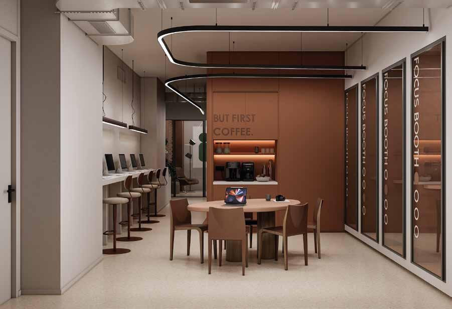 an existing industrial building, complemented by newly constructed floors. It consists of a retail area
